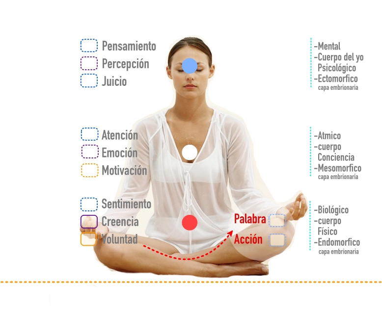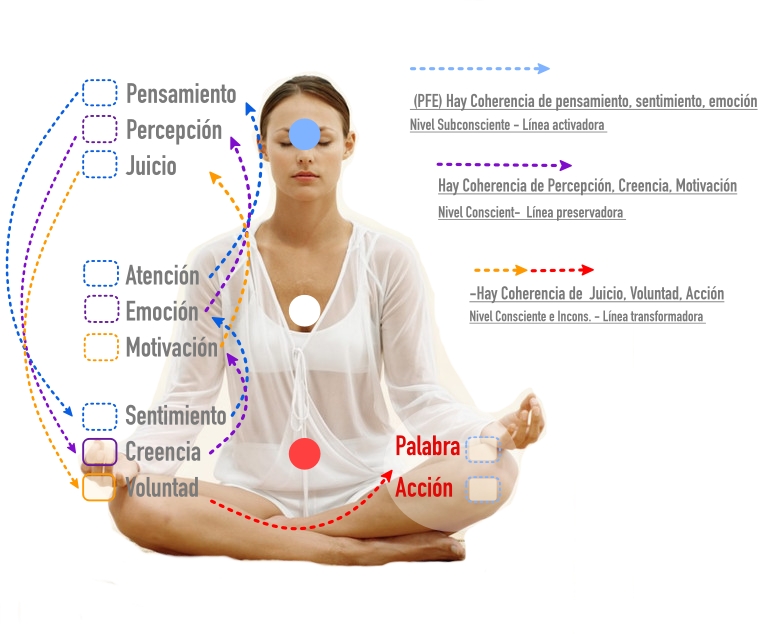 Atraemos aquello donde se pone la Atención, según donde focalicemos nuestra atención, así será el pensamiento, este activa un sentimiento en resonancia con ese pensamiento, que a su vez activa una emoción siendo esta la respuesta que afecta a la química de nuestro cuerpo físico. Todo lo anterior condiciona la percepción y el juicio, creando creencias y voluntad afines que culminan en la acción.